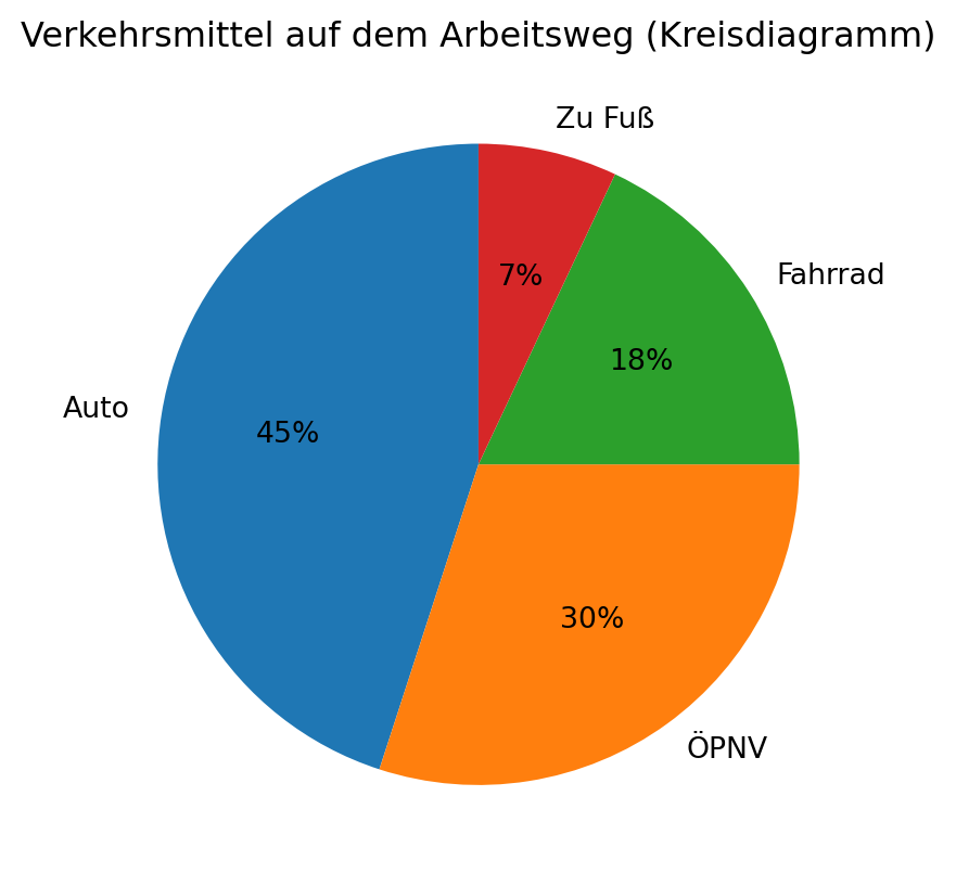 Eignet sich besonders für nominale Daten mit wenigen Kategorien.Beispiel: Anteil der Verkehrsmittel bei Arbeitswegen (Auto, Bahn, Fahrrad, …).