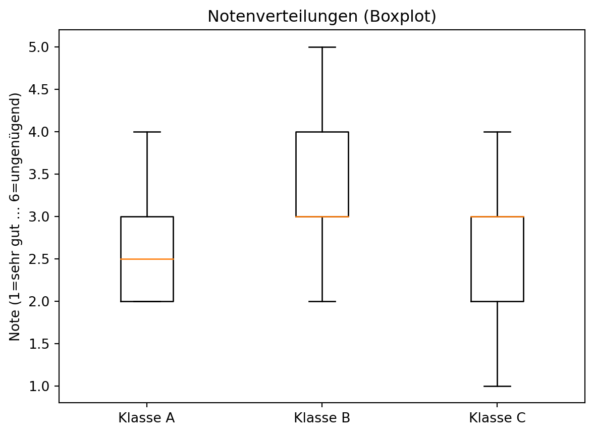 Besonders nützlich zum Vergleich mehrerer Gruppen.Beispiel: Notenverteilungen verschiedener Klassen.